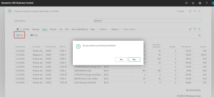 To obtain the list necessary for physical inventory, the print function is invoked from the journal lines, resulting in a list to be used by those conducting the inventory.