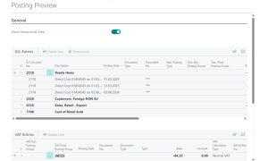 In addition to the G/L entries, the “Preview Posting” page will also show VAT entries and entries in related tables.